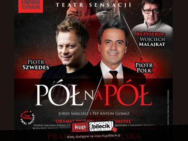 "Pół na pół" to przesycona czarnym humorem komedia, opowiadająca o dwóch przyrodnich braciach, którzy postanawiają pozbyć się swojej rodzicielki. Czy można polubić kogoś, kto źle życzy własnej matce? Okazuje się, że i owszem. Robert i Dominik, którzy na początku jawią nam się jako dwa niezbyt sympatyczne typy (jeden chce uciec, bo ma dość opiekowania się na wpół sparaliżowaną staruszką, drugiemu najbardziej zależy na pieniądzach ze spadku), powoli odkrywają coraz mroczniejsze tajemnice, które pokazują, jakim potworem była i jest ich własna matka. Nestorka rodu nie pojawia się na scenie, jej obecność sygnalizuje tylko natarczywy dzwonek, a mimo to mamy świadomość, że nadal jest wszechobecna i wciąż tyranizuje otoczenie, a na dodatek jest "niezatapialna" jak nie przymierzając pani Wilberforce z "Trzeba zabić starszą panią".
