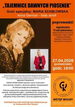 Wykład RUTW: „TAJEMNICE DAWNYCH PIOSENEK” ANNA GERMAN- BIAŁY ANIOŁ